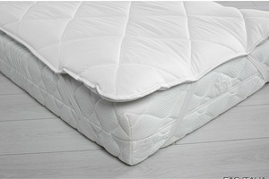 Tessuto in morbida microfibra, angoli dotati di elastici da 4 cm. Omologato per l'uso in hotel e altre strutture ricettive. Il topper non assorbe umidità né odori.